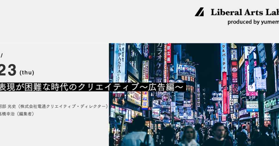 出演のお知らせ 表現が困難な時代のクリエイティブ 広告編 Produced By Liberalarts Lab Mitsushi Galliano Abe 阿部光史 Note
