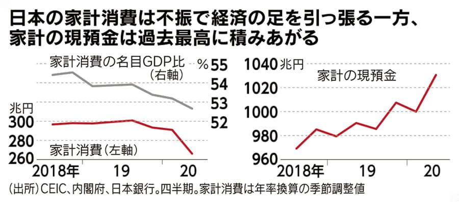 国内消費のマグマ動くか 家計現預金 3カ月で30兆円増 日本経済新聞