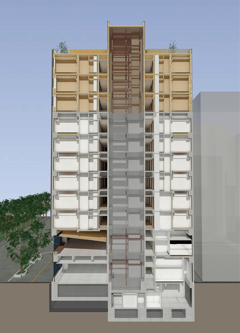 木質構造ニュースまとめ プレストレス中規模木造建築物 木造ハイブリッド高層マンション Marina Note