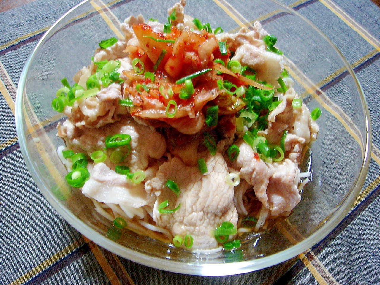 冷しゃぶ豚キムチの冷やしうどん 素麺にも レシピ 作り方 By サブちゃん クックパッド