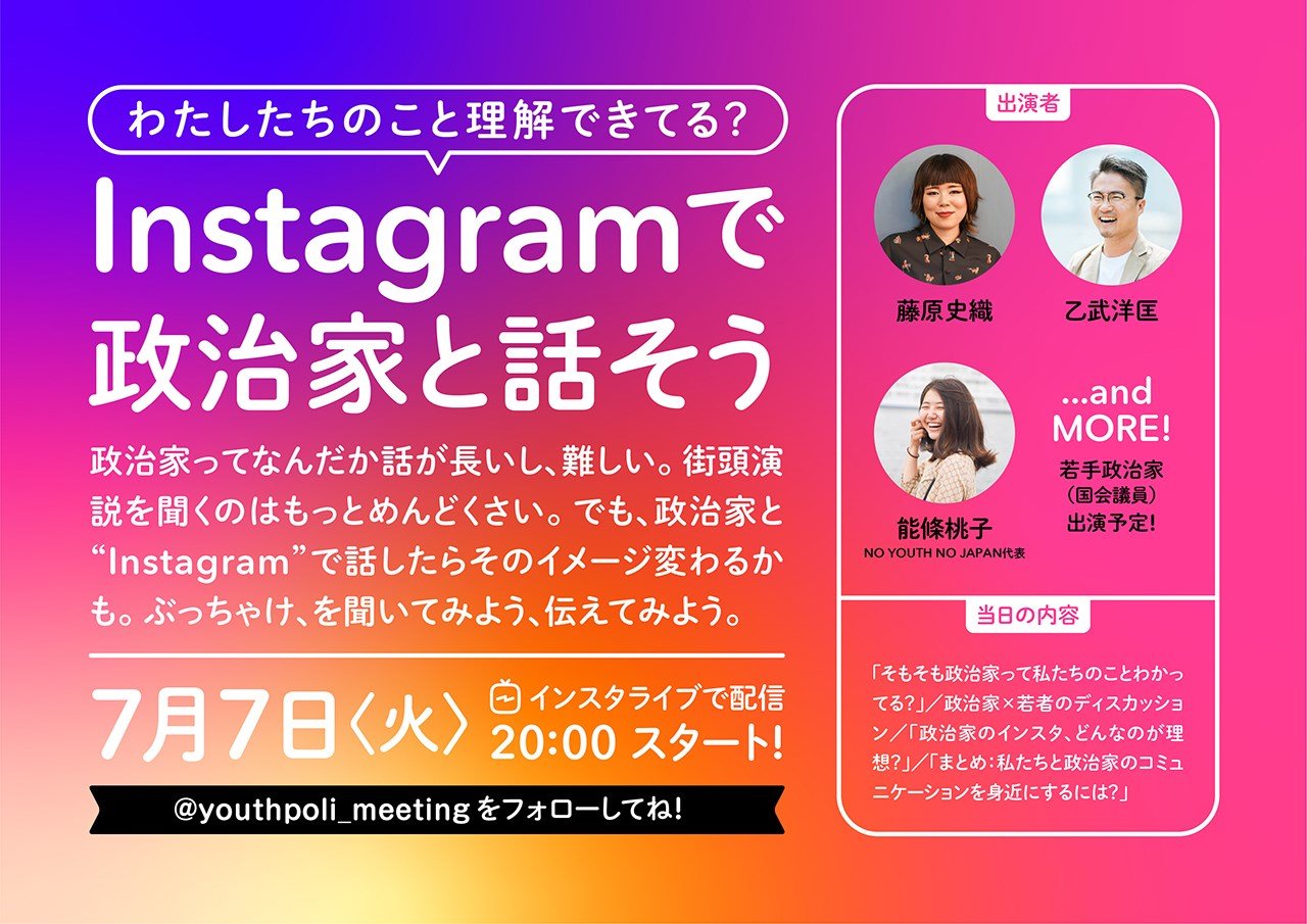 7月7日時より Instagramで政治家と話そう を日本初開催 日本の若者と政治家がライブ配信でディスカッション Facebookについて