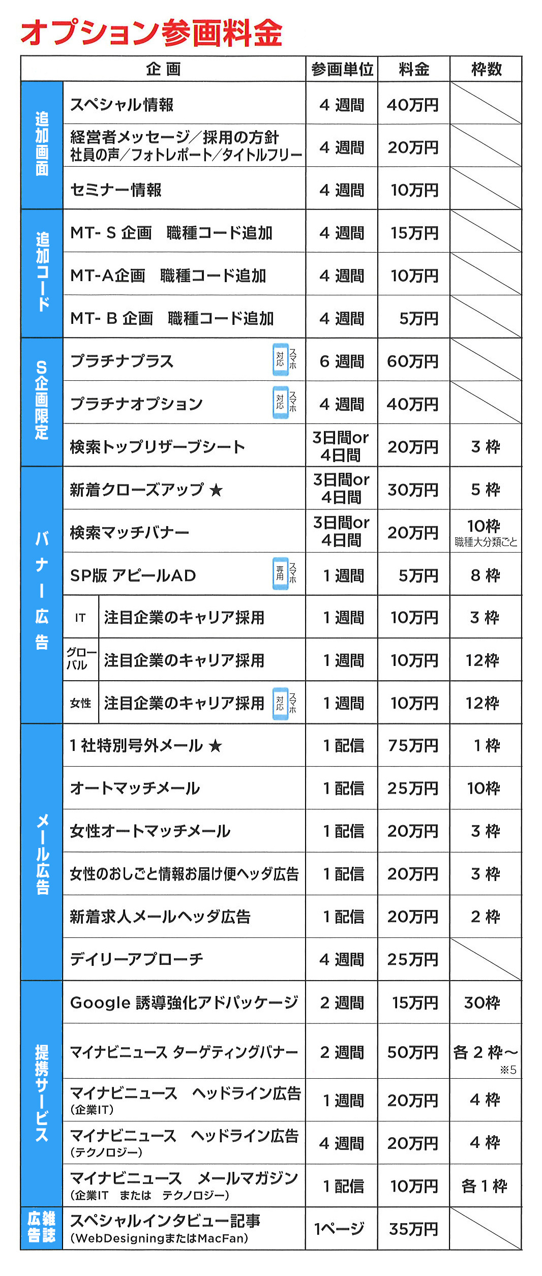 オプションと料金 マイナビ転職へのご掲載ならcin求人agencyへ