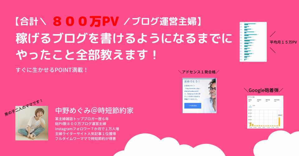 合計800万pvブログ運営主婦 稼げるブログを書けるようになるまでにやったこと全部教えます くぅさん 時短節約家 Note