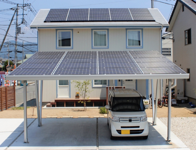 石川のひまわりほーむ 雪や風に強い発電式カーポート 日本経済新聞