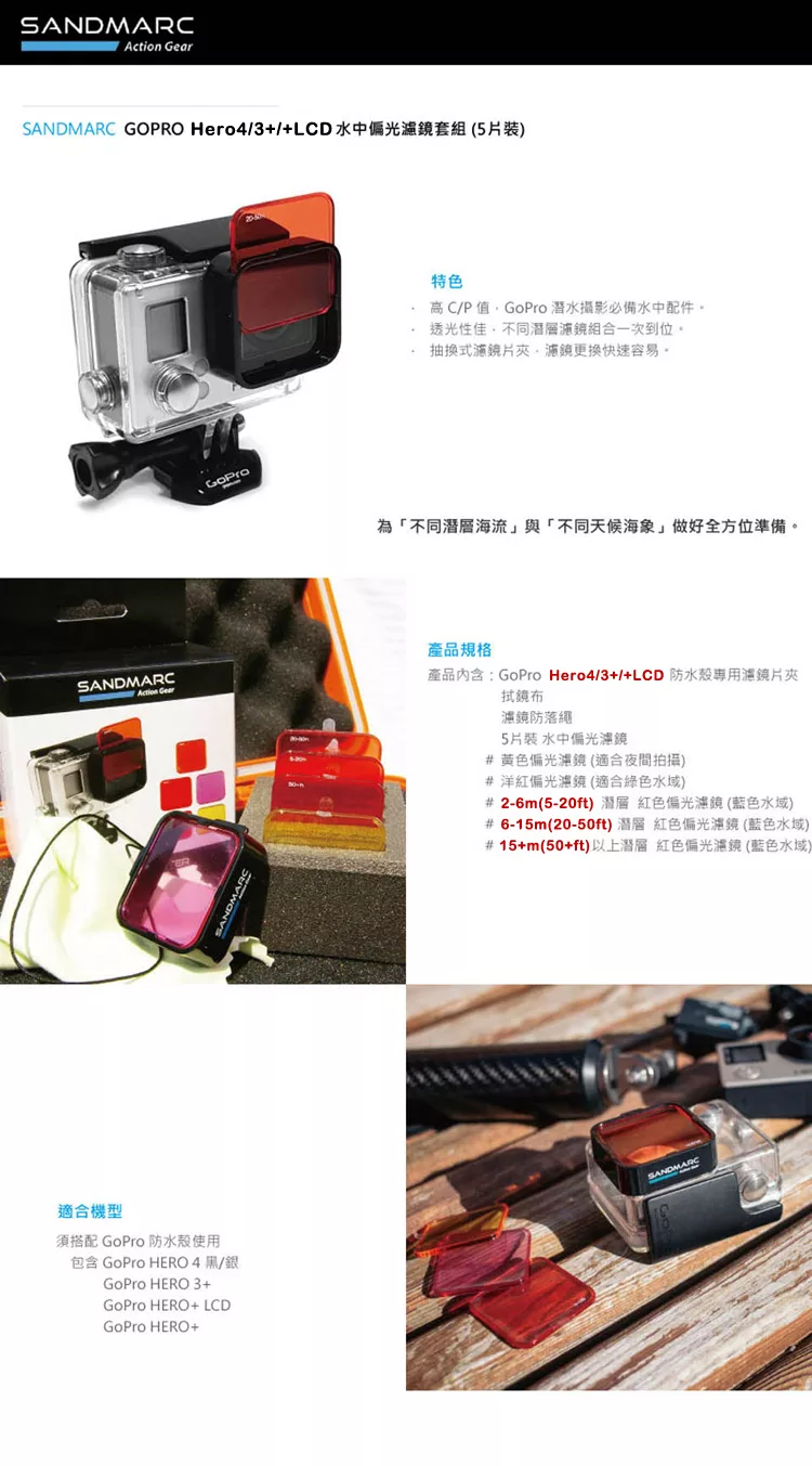 博客來 Sandmarc Gopro Hero 4 3 Hero Lcd 水中偏光濾鏡套組5片裝