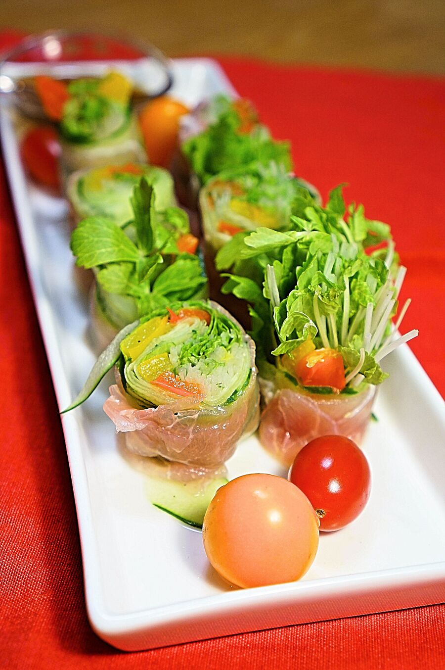 簡単オードブル カラフル千切り野菜の 生ハム巻き レシピ 作り方 By まめもにお 楽天レシピ