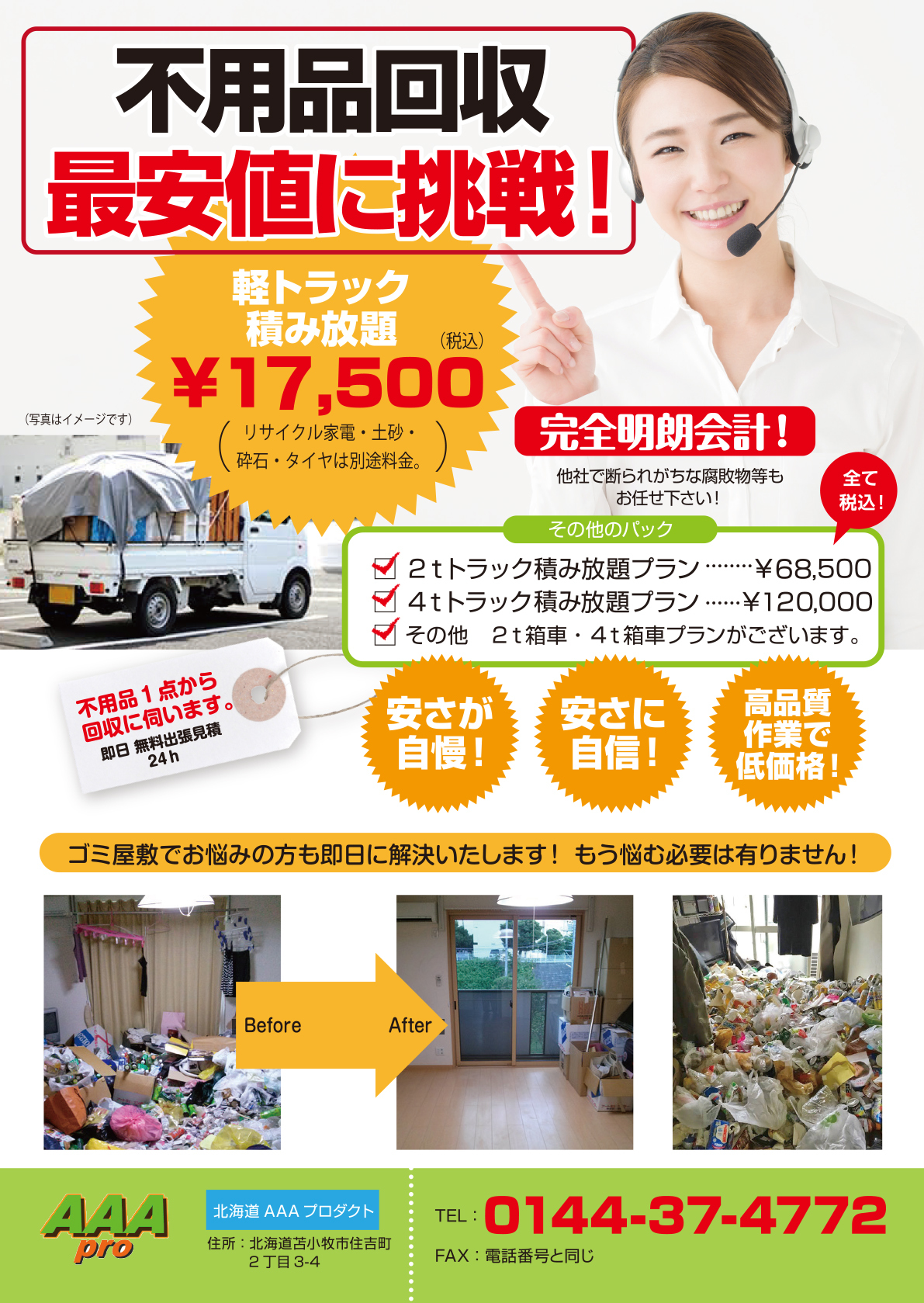 当社1番人気 軽トラック積み放題パック Pr 旭川市の不用品回収業者です 有限会社フェニックス 軽トラック ゴミナビ
